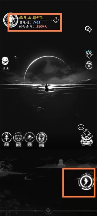 游戏主界面简单明了,大体是一个修士坐在船上钓鱼。