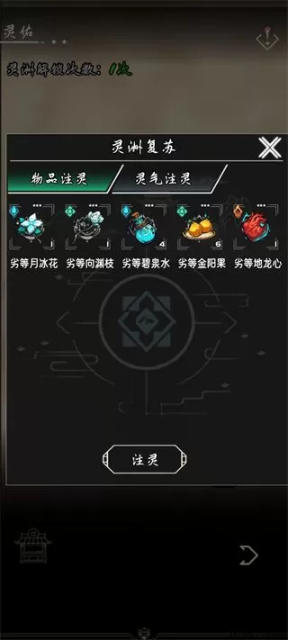 4、灵州注灵的材料和修士升级材料一样,游玩过程中推荐优先给修士升级,当修士的等级到达第一次突破境界的时候,开始给灵州注灵。
