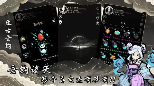 通过垂钓的方式来获得各种稀有的物品,简单的点击来完成垂钓模拟,收集稀有丹药来提升。