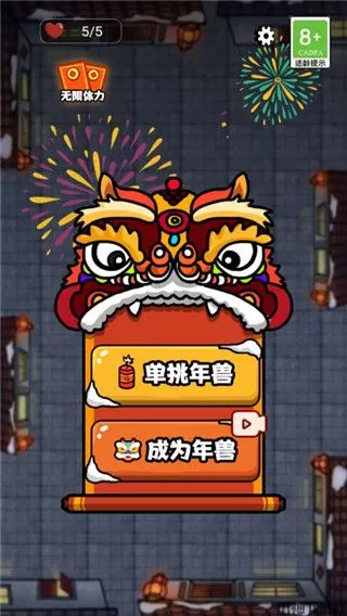 3、游戏中有很多精彩的战斗要完成,用最原始的生存挑战,你要消灭各种年兽,感受无限精彩。