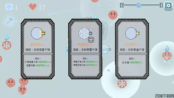 2、双摇杆自动射击,肉鸽塔防乐趣无限。