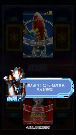 2、开始游戏后,点击抽卡召唤奥特曼战士一起战斗;