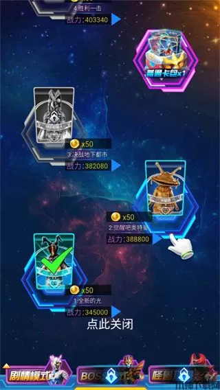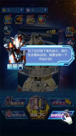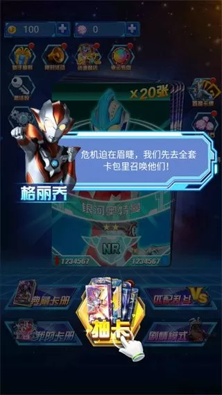 丰富特技等你施展出来,收集更多的资源才能够让自已变得更加强大,相信应该没有玩家能够拒绝的了奥特曼的诱惑。所有的卡包都是需要金币才能够购买的,卡包里面会有各个等级的卡牌,运气好的话很有可能会抽到最高SR等级的奥特之王,奥特之王没有对手,要是你有了奥特之王游戏基本上是宣告胜利了。对自己的战略布局还不够自信的朋友可以选择剧情模式先模拟战场,熟练以后再去开启正式的战斗。你肯定能够在短时间内掌握游戏技巧并主宰战场!