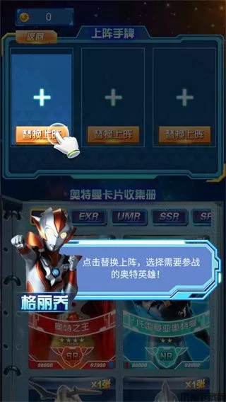 8、点击替换上阵,选择需要参战的奥特英雄;