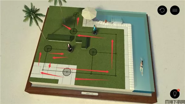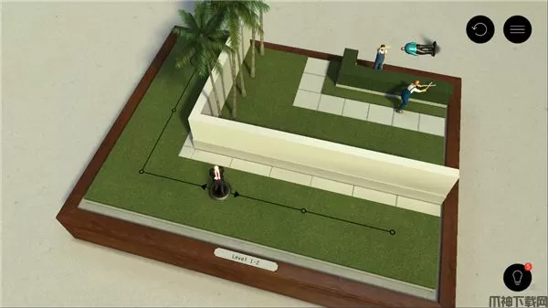 2、游戏采用了触摸式操作,通过拖动杀手47来实现各种指令,我们需要观察关卡设置找到做合理的路线进行暗杀,游戏在操作上很简单,玩家上手很快,不过玩起来还是需要玩家熟悉下,贸然的行动只会使任务失败,精心的做好规划,有时走错一步就很难抵达终点。