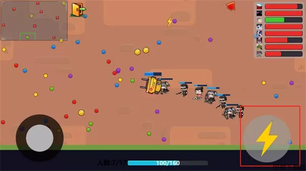 贪吃战车游戏的过程中玩家需要通过驾驶战车在战场上游走,并不断的扩大队伍的规模,增加人员的加入让自己的队伍的火力能变得更加猛烈,其中还有很多的武器装备可以通过提升等级来获取更多的伤害增幅,灵活的操控战车在这个混乱的战场上吞噬能量干掉其他的敌人,让自己一家独大!