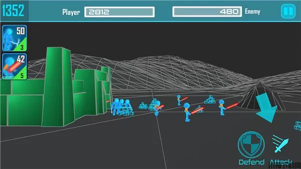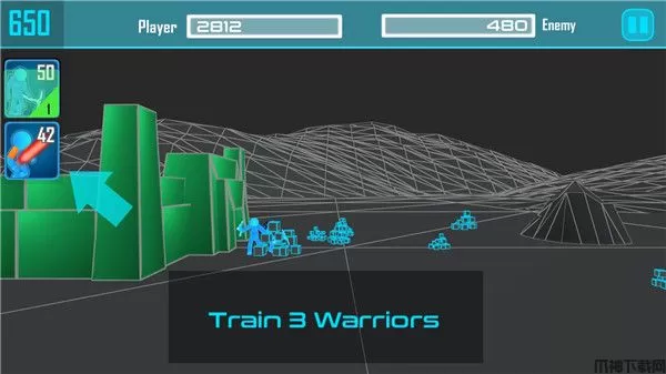 4、当经济足够时,招募火柴人战士,登上战场进行对战;