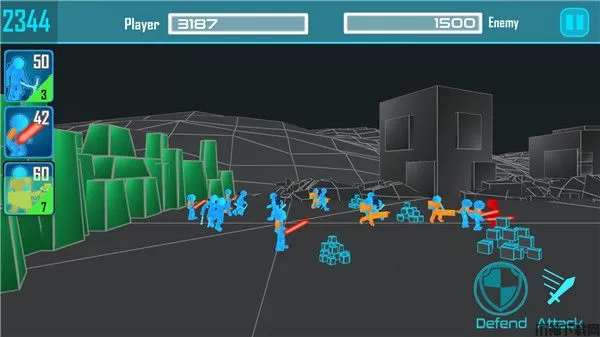 3、合理搭配不同的火柴人战士兵种进行对抗。