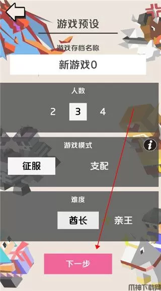 3、选择游戏人数、模式、难度后点击下一步