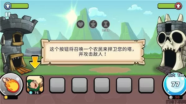 3、而这个按钮将召唤一个农民来捍卫您的塔,并攻击敌人