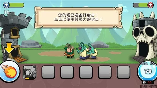 4、过程中,当您的塔已准备好射击后,还可点击左侧技能按钮以使用其强大的攻击哦