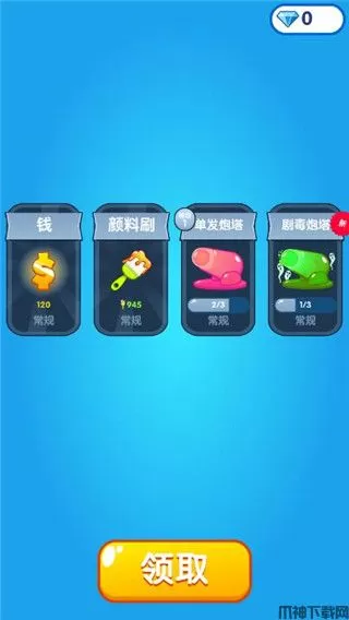收集升级不同的喷涂道具,击败源源不断入侵的泡泡怪兽,颜料飞溅,快速融合,尽可能地尝试升级,完成任务。