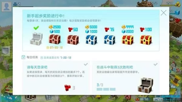 3、点击家园底部的目标把子图标可以领取新手奖励和领取任务奖励。