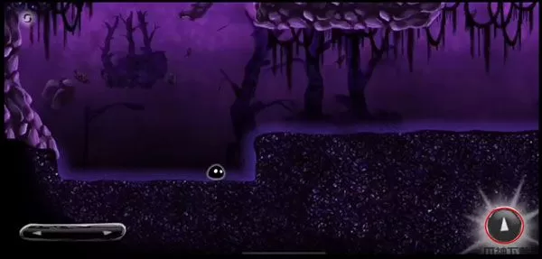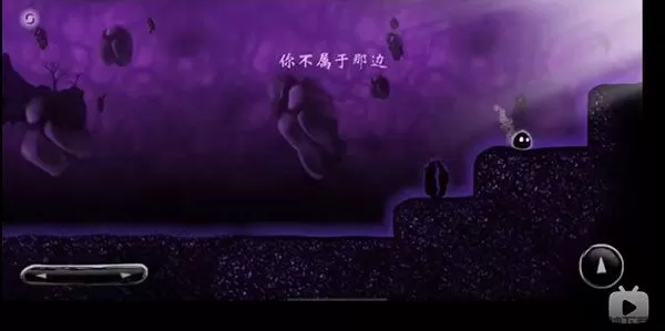 4、我们看到一个小毛球来到一个非常黑暗的地方,左边是左右方向键,我们向前进;