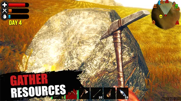 获取工具镐来捕获资源,并尝试开采金属矿石,硫磺矿石或简单的石头。您可以使用Tool Ax获取日志堆。不要忘记穿着你的基础盔甲,因为你无法知道哪些动物,生物或食人族试图攻击你。