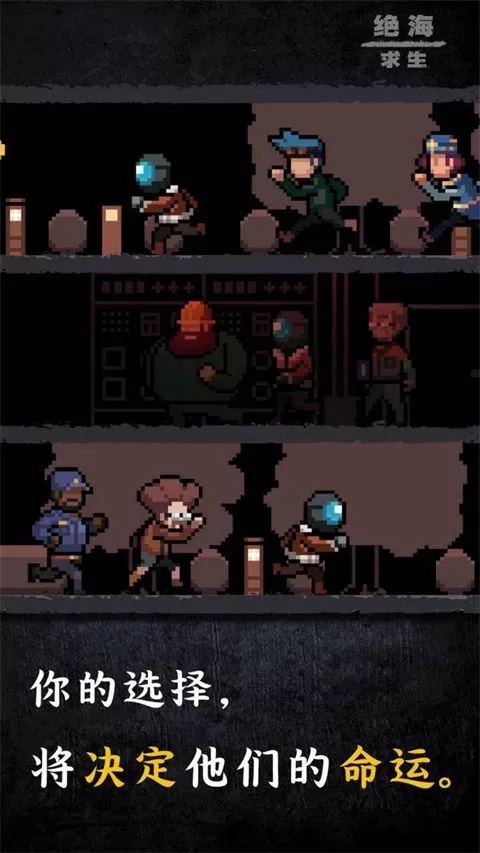 绝海求生手机版是一款像素风的解密逃脱RPG手游,在这里你扮演的戴着奇怪头盔的主角上了一艘船,可船刚出海,意外就发生了,在目睹船长被杀后,你最终也掉入了海中失去意识,再一次醒来时你发现自己被一个老爷爷救了正置身于陌生的环境中,为了找回失去的记忆,你只能不断往前走,而在找寻记忆的过程中,这黑暗都市的秘密也缓缓揭开了面纱。