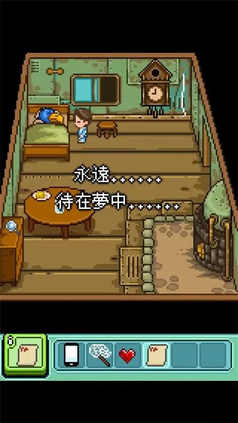 幸福的青鸟是一款以梦境为主题的冒险解谜像素风手游,游戏故事背景发生在你和弟弟去参加庆典的时候找到了一个毛绒的知更鸟,是日夜晚,你有着不思议的梦。在森林里发生怪异的现象,有个人的头看起来就像鸟似的,为什么会走不出去森林呢,它到底给你一个什么样的线索呢,是真的为了拯救弟弟吗?还是有什么隐藏的故事。为此你需要通过收集物品、解答谜题来逃离梦境。其经典的像素风格,精美的卡通人物生动形象,结合上众多奇幻般的剧情内容,使得该游戏充满了趣味性,为玩家带来全新的冒险体验。