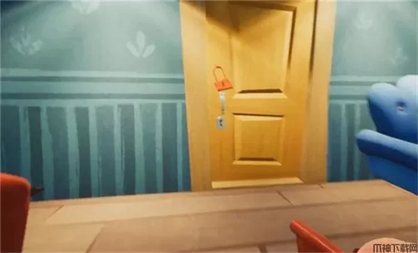 打开蓝色沙发旁边的黄色门,进入地下室