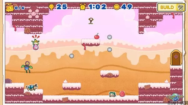 游戏闯关时提供多种模式供玩家游玩,有简易闯关(直接跳跃躲避迎面而来的怪物抵达终点即可),也有杀怪闯关(玩家需要清理掉房间的所有怪物然后抵达终点才算过关),还有一种很有趣的玩法,这个玩法地形已经给你生成好了,但是机关以及怪物需要玩家自行摆放,然后再开始闯自己DIY的关卡。操作方面有点像炫彩版的马里奥,灵活运用英雄的跳跃、旋转和地面重击打出属于你的各式各样闯关秘籍。