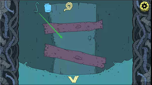 8、点击钩子将门上的木板勾下来。