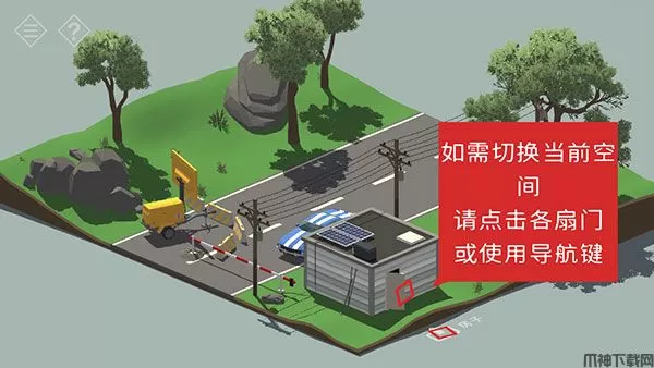 5、如需切换空间可以点击通往各项空间的门,点击门,进入屋内。
