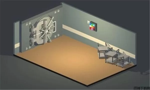 4、从进来的门出去往左,捡起暗处木板放在刚刚的门口,调整角度,可以看到排风扇。回到休息室从另一扇门出去,向左可以看到另一扇密码门,根据休息室三张纸片提示,显示1时点亮中间一列全部和最右一列第一格,显示3时点亮第一列一、三格、第二列全部、第三列最后一格,打开门即“气体进料”房间,进去在柜子里找到阀门。