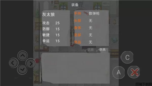 6、在背包中你可以查看你获得的物品、武器以及防具;