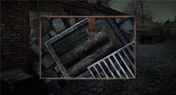 8、回到女人那里,用矛将下水道栏杆撬开,再用皮带家磁铁将女人的钥匙吸上了