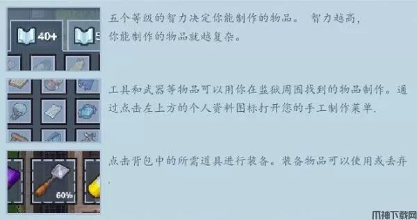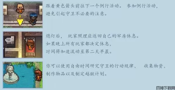 你的目标即是越狱,期间你可以做的事情很多,越狱的方法也多种多样,但如何越狱完全由你决定。