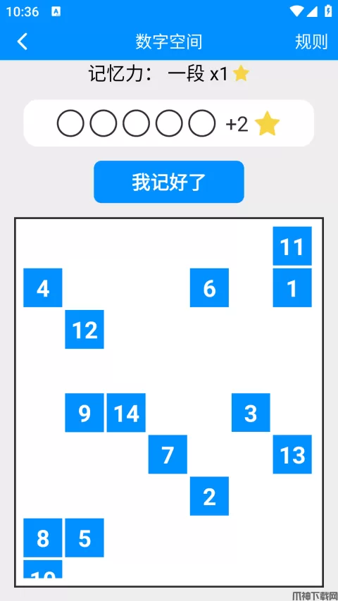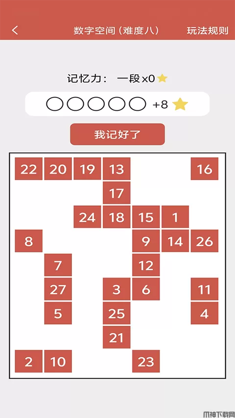 1、数字空间记忆,记住开局数字的页面分布,记好后依次点击数字的位置顺序。