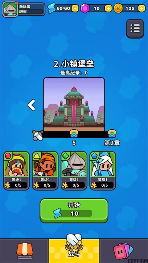 1、打开赛赛军团手游,点击战斗下的开始,消耗一定的体力来开始闯关;