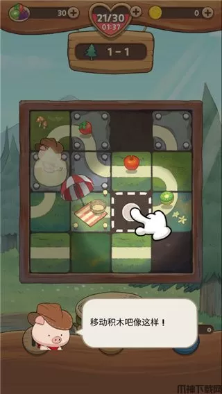 1、全新的拼图类休闲玩法,将积木移动到空白的区域,然后完整的拼凑出一条道路供小猪行走;