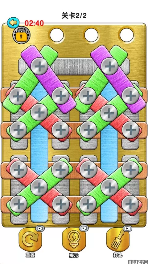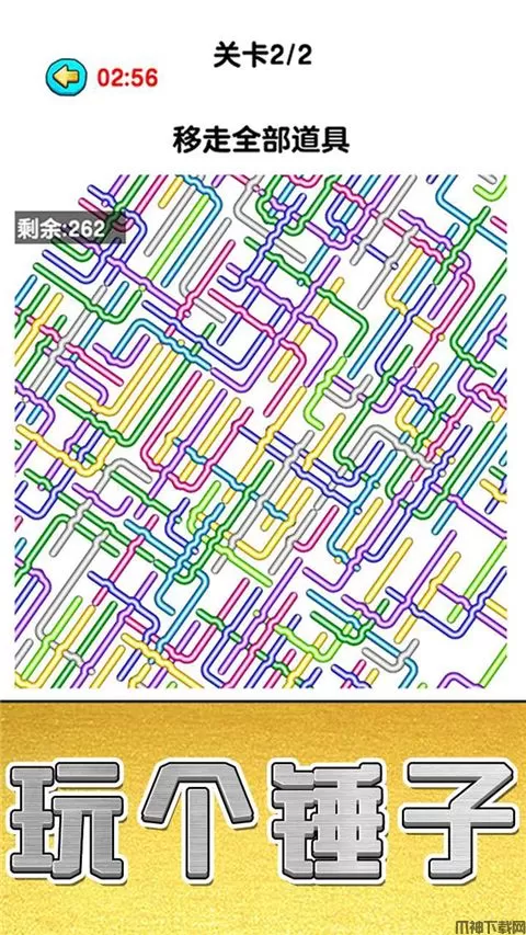 玩个锤子手机版是一款休闲解压手游。游戏中为玩家提供打螺丝、消除箭头、清理管子3种模式,每一种玩法内置2个关卡,分别是简单、困难,内置3分钟闯关时间,玩家需要在时间内完成才能通关,整体非常考验大家的反应能力,试一试看看自己能否完成困难难度的关卡吧!另外,游戏中还使用提示、重置功能,可以帮助大家更好的通关!