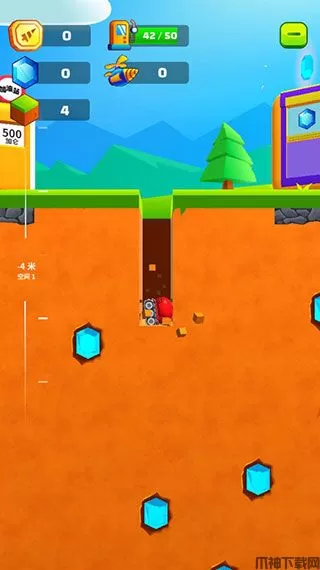 Ground Digger是一款休闲挖掘游戏。在游戏中,玩家需要操作挖矿机不断的向当地进行挖掘,找到各种各样的宝藏,获得大量财富。随着挖掘深度不断增加,还会进入不同的地层,并且玩家还可以购买更多不同的道具,在挖掘的过程中让你的挖矿更加精准。游戏还提供了各种各样的丰富场景,比如雪地、沙漠、流沙层、草地等等,不同的场景有着不同的氛围,尽情的挖掘,探索神秘的全新空间。还拥有各种属性的加成,通过对挖矿机的钻力、油箱容量、俯冲力的升级,让你更好的在地底轻松进行挖掘,拥有更加轻松的游戏体验,感兴趣的小伙伴快来下载体验吧。