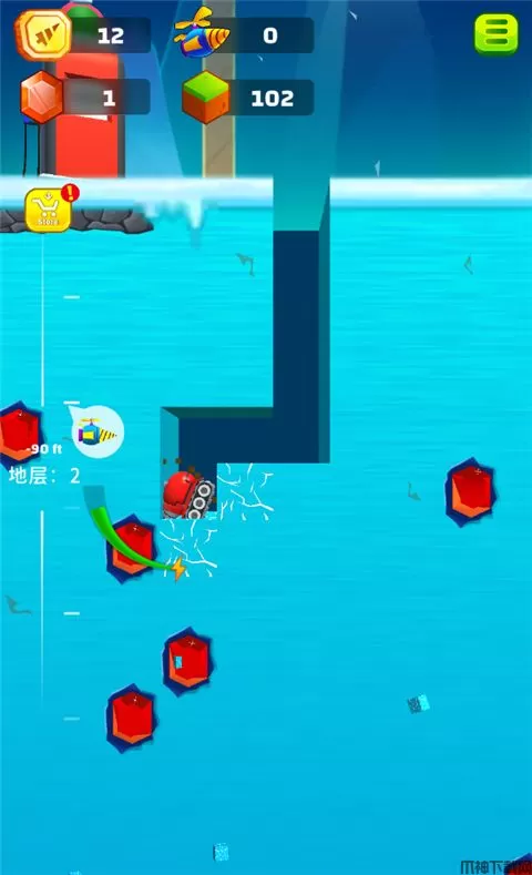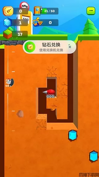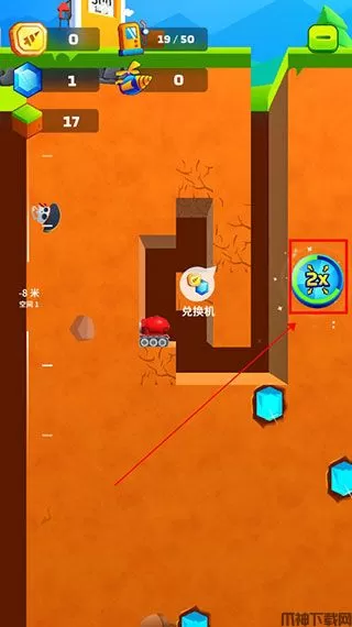 2、进入游戏后,拖动挖矿钻地机向下移动即可;
