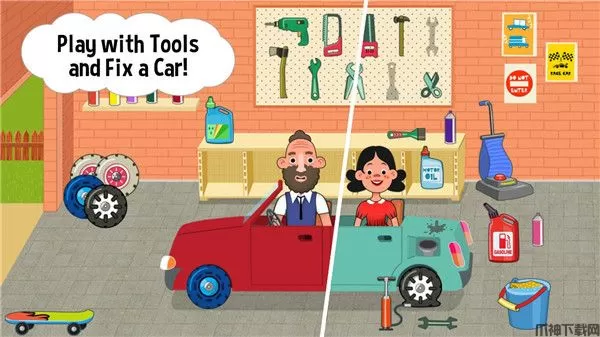 4、主题房间精心呈现现实生活环境:在厨房做饭,在车库修车,在后院玩耍。
