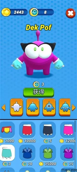 4、引入来自《Cut the Rope》宇宙的新角色:0mNom和0m Nelle是本游戏的头号巨星没错,不过还有更多酷炫角色和帅气服装等你来解锁;