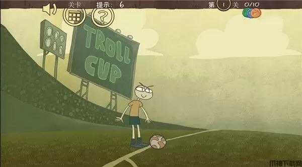 第一关:点击坐上角的牌子,球员从后面上来踹飞小贱,过关。