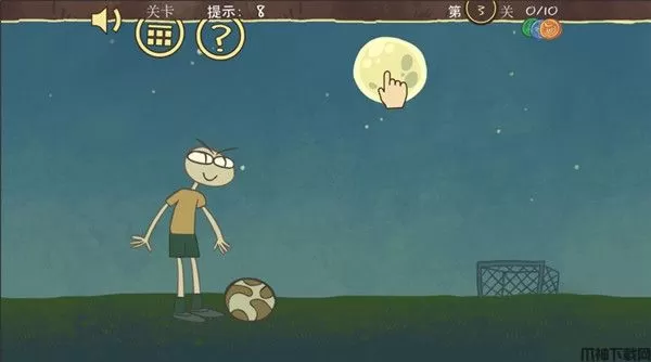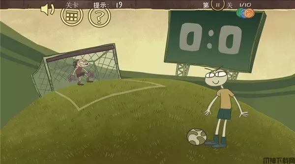 第十一关:这一关我们只需要把守门员上面的门,给拉一下就行了,然后再点击人物踢球。