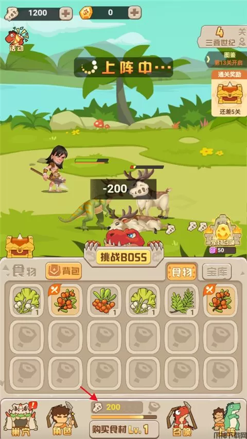 5、正常是战斗是挂机可以获得骨头,骨头可以获取食物,相同食物可合成;