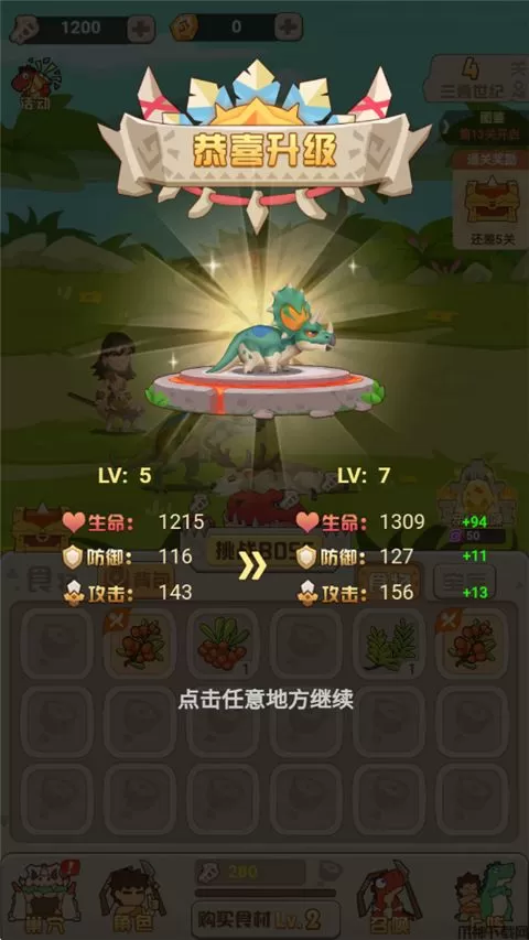 猎龙消消大作战还加入了丰富有趣的合成元素的玩法,各种肉类比如里脊肉、五花肉、腐肉、肋排等等,加上各类远古植物,例如:沙棘、银杏果,蕨叶。植物肉类任意合成,挑选你的随从恐龙最喜欢的食物喂养更有多倍加成,让你的随从升级事半功倍!随着你不断培养巨龙猛兽们就能一阶进化,超进化,二阶超进化,甚至还能变异,属性有着更大的提升!
