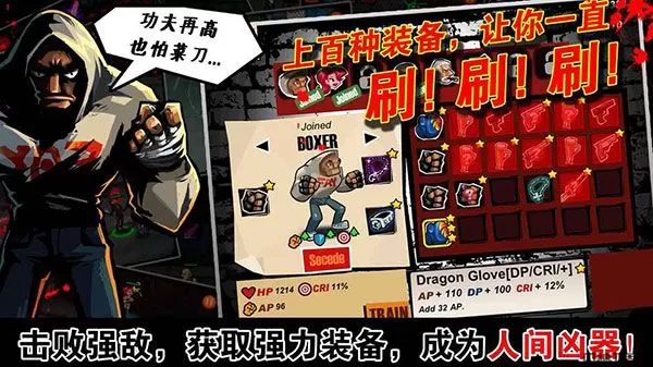 7、恐怖的Boss在巢穴中静静等待你的到来;敌如潮涌的竞技场隐藏着最逆天的装备;只有罪恶街区的强者,才能征服一切。