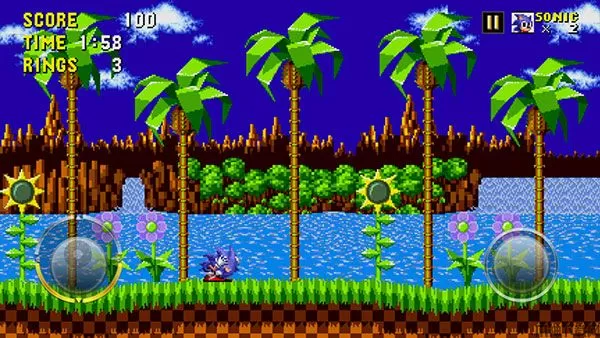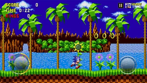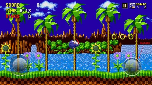 1、在本站下载安装好刺猬索尼克手游正版,进入后左下角按钮左右滑动控制索尼克移动向左向右跑。