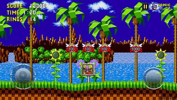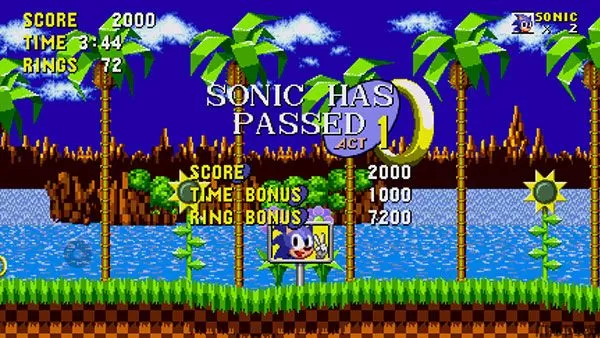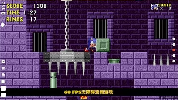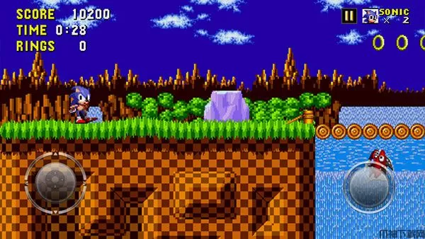 1、游戏百分百移植街机玩法,玩家需要操控我们的索尼克进行一路的冒险闯关。