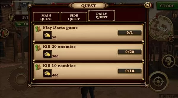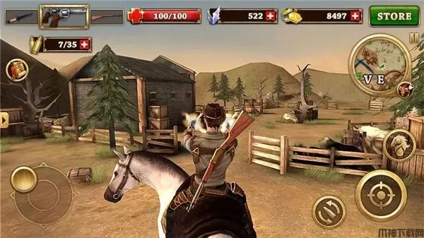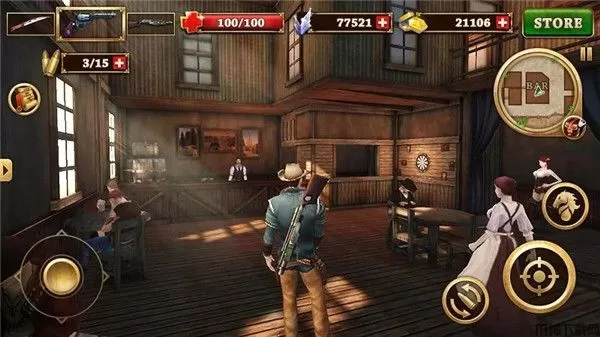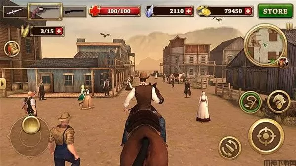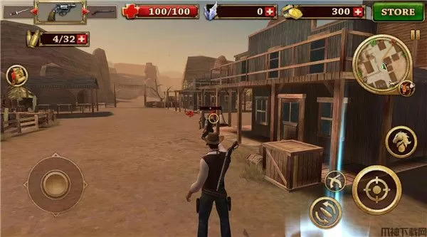 枪火西部(West Gunfighter)是一款剧情类的射击类型游戏,在游戏中玩家将会扮演一个牛仔的角色,在一个西部小镇上游走,可以触发各种剧情,接取各种任务,完成任务可以获得丰厚的奖励,非常的有趣。相比其它的枪战射击游戏,它并不是一上去就是射击,那种给人的感觉很无脑,而这款游戏有点像牛仔漂流记一样,走到一个地方会有不一样的剧情,跟别人单挑,有时候会有许多不服的人跟你挑战,需要你去打败他们。