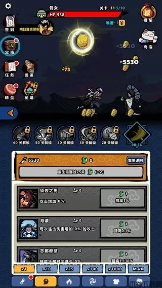 3、升级刀法提升攻击力,重生轮回新鲜玩法更爽体验。