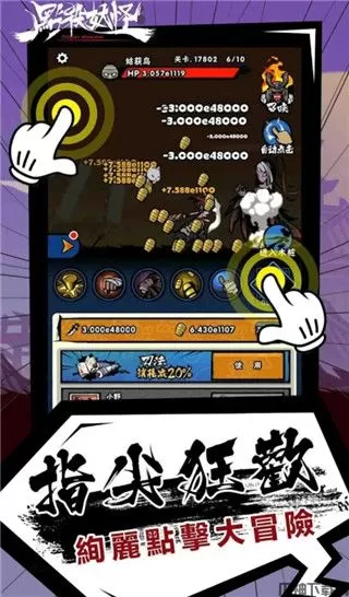 点杀妖怪是一款题材新颖的放置挂机手游,游戏采用了独特的休闲、放置、养成元素等元素,深受广大玩家的喜爱。另外,新版本采用了日本的忍者元素及国风水墨画风的结合,在视觉感的营造上,非常具有国风之美。在玩法方面,游戏拥有海量关卡等你挑战,每当玩家成功突破当前关卡,便会出现新的玩法与系统,丰富的养成特点,即便是一款单机类的放置游戏,也照样十分精彩。而且整体风格以竖屏展示,并且战斗界面与玩法说明分屏处理,在这里只要玩家创建了角色,角色会自动攻击,期间你也可以通过点击战斗区域进行加速,非常休闲有趣。