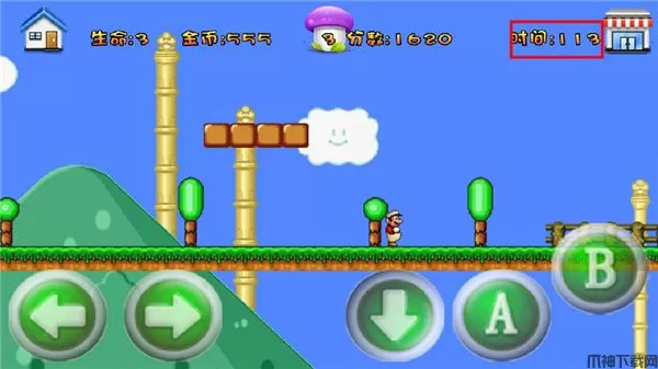 3、进入游戏后,玩家们可点击固定的虚拟按键来操控玛丽;