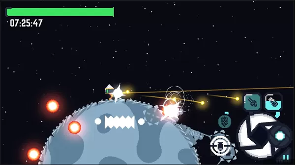 星球爆破公司是一款像素画风的趣味闯关游戏,丰富的科技资源选择搭配,趣味简单的爆破类玩法,有难度的任务挑战,精致细腻的街机风格。玩家需要控制机器人去破坏突然出现的大量星球,这些星球一旦撞上来世界就会毁灭。游戏关卡目标主要是要玩家在任务中破坏地表,并往星球核心投下炸弹,从而炸毁整个星球。过程中要当心其他星球上的防卫设施,例如地表上的炮台,空中的外卫星,甚至是在星球内部保卫核心的内卫星,而关卡有限时、玩家必须把握时间来完成,否则星球就要撞上了。这一系列的不寻常现象的背后,又隐藏着什麽阴谋呢,快来下载去解开真相吧。