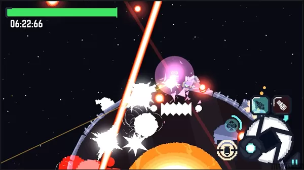 拖动攻击键的摇杆可以射出破坏炮,和钻头一样是用来摧毁地壳炮塔和追踪炮的,不过不同的是它有弹药限制,当不射击破坏炮时会迅速补满弹药。